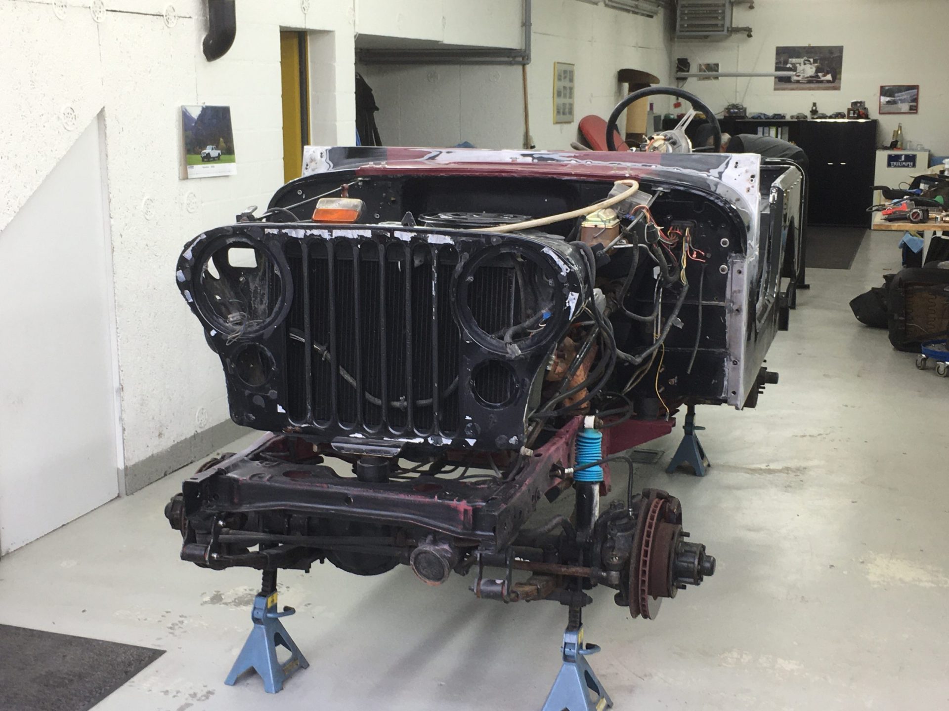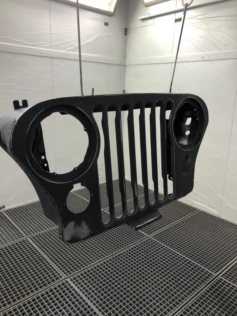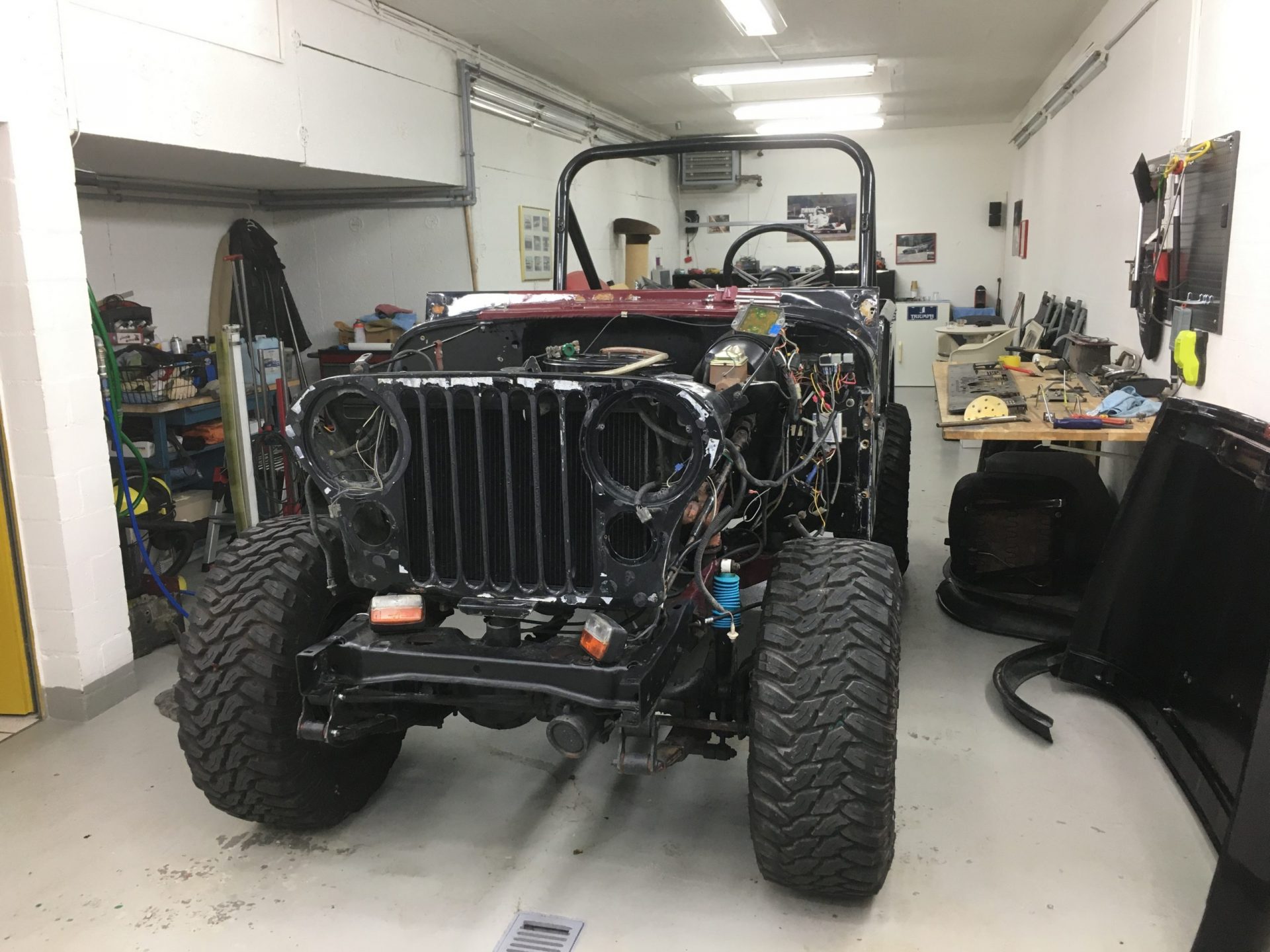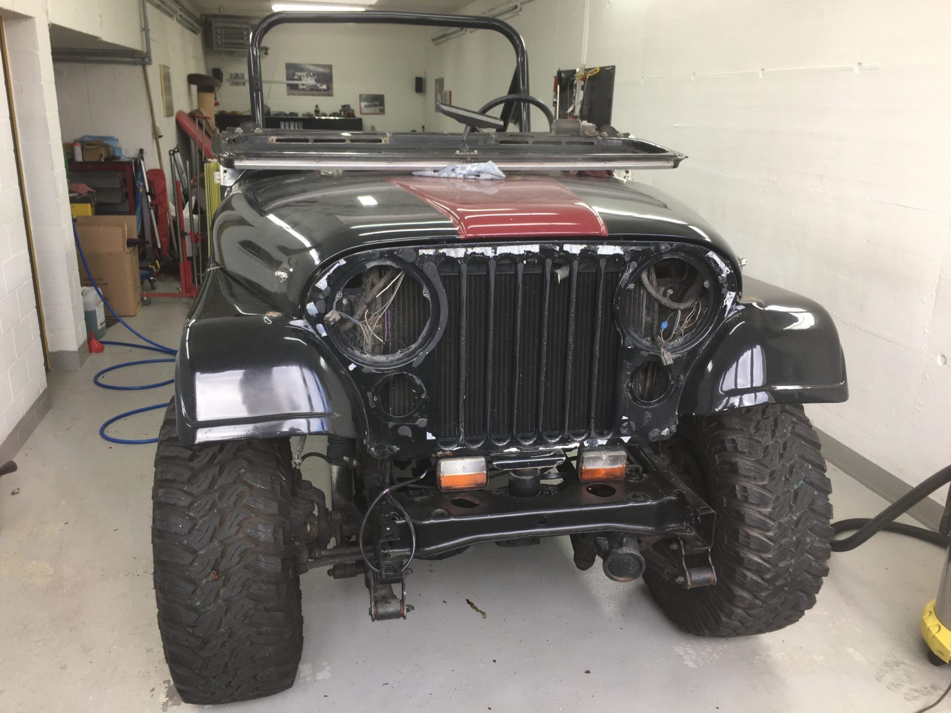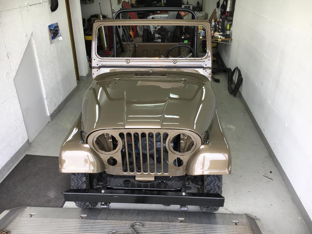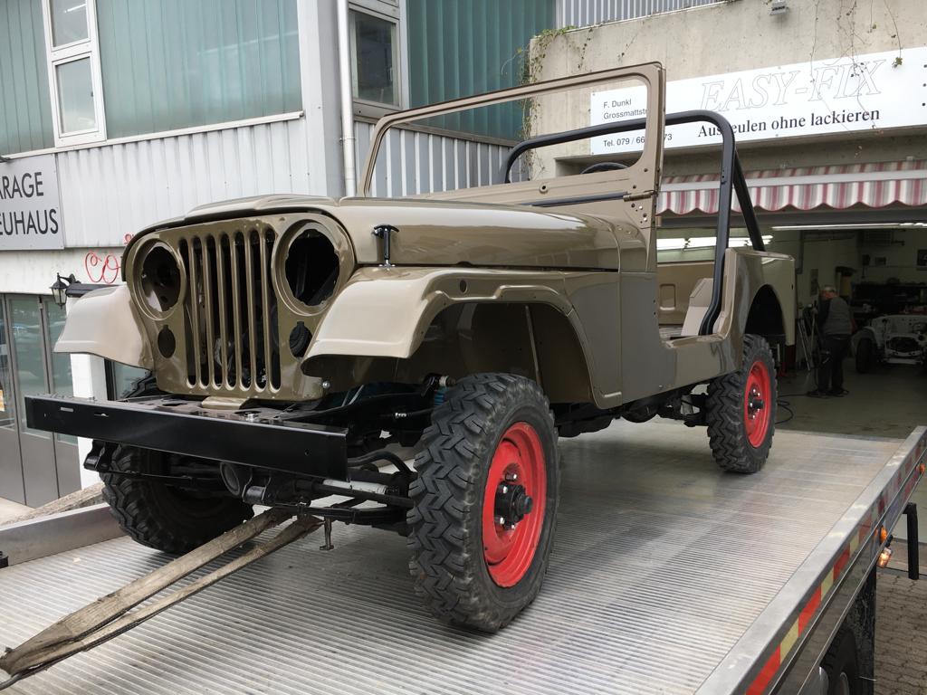 Zurück vom Lackierer erstrahlt der CJ-7 in neuem Glanz! Nun wird er von unserem Spezialisten wieder zusammengeschraubt….