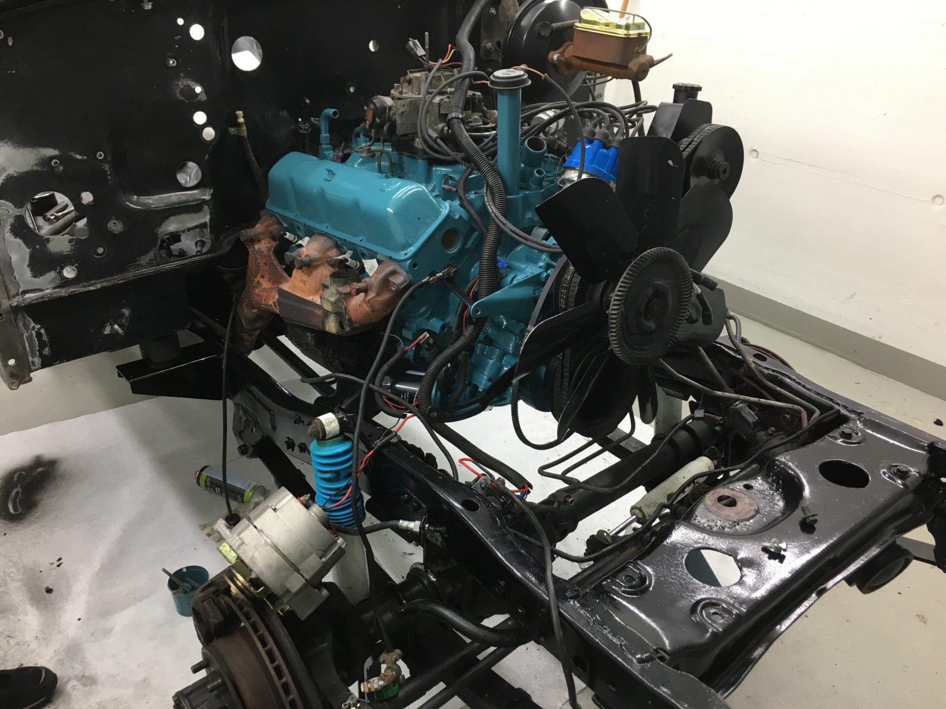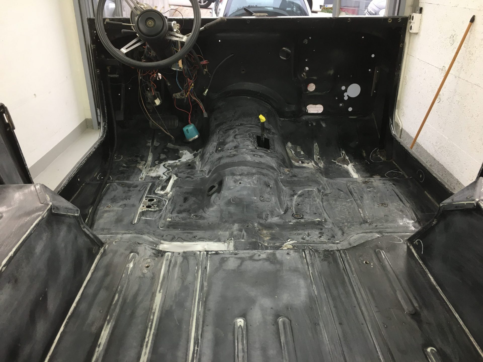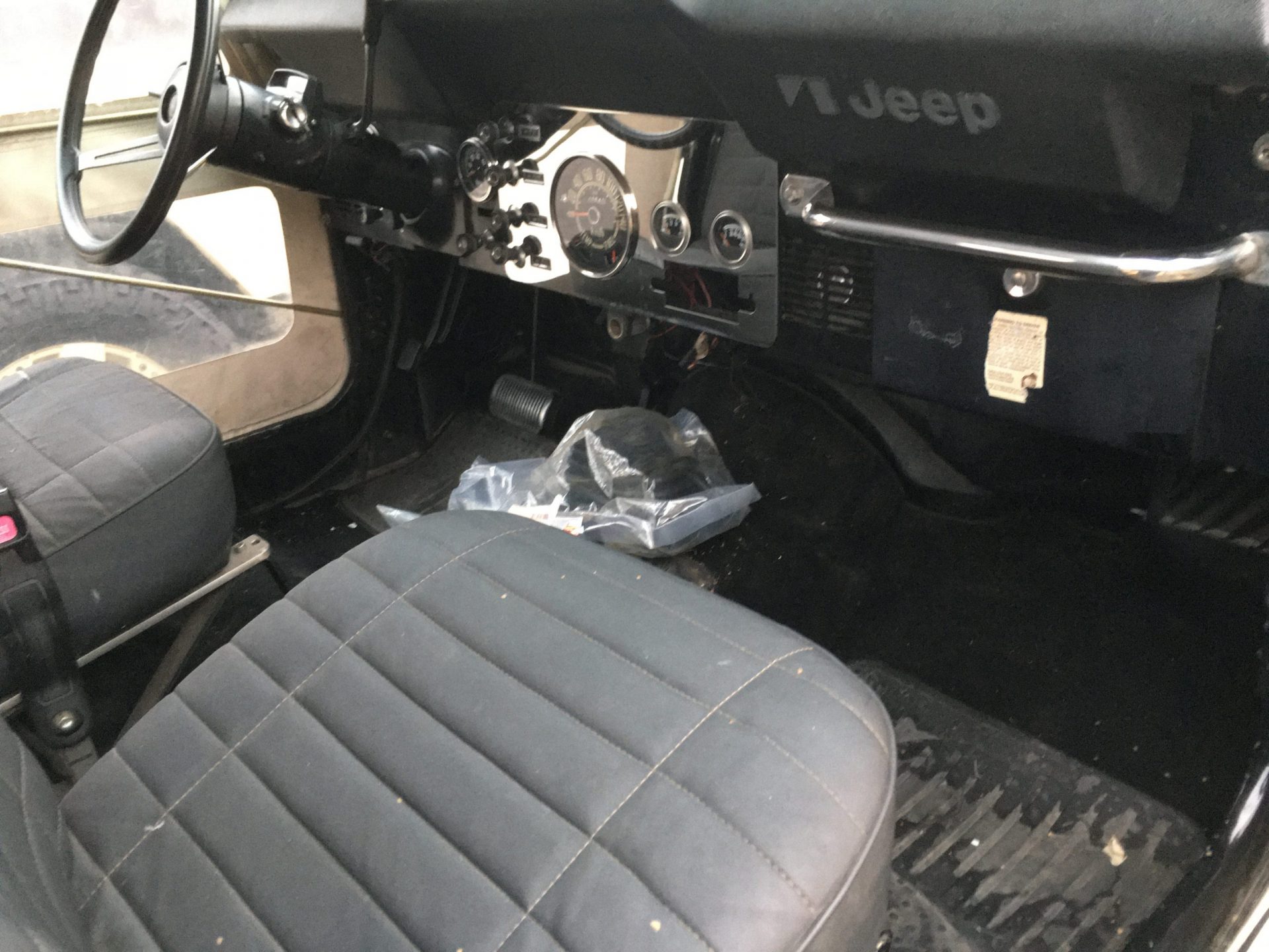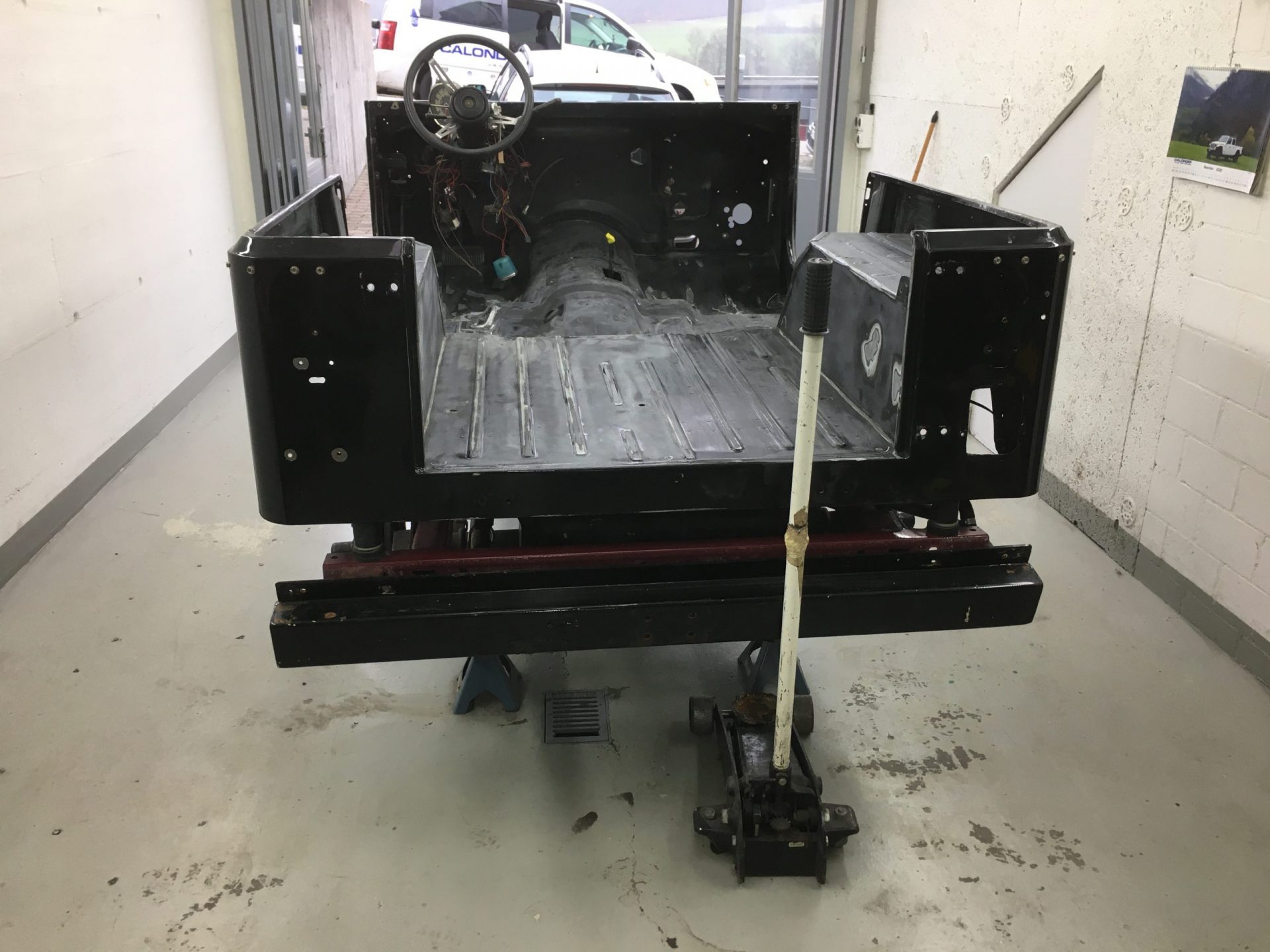 Die Restauration ist in vollem Gange. Der CJ-7 wurde bis aufs Chassis komplett zerlegt, entrostet und die überschüssigen, nicht benötigten Löcher zugeschweisst. Zudem wurde die Karrosserie ausgebeult und in Stand gestellt. Das ganze Armaturenbrett, inkl. Heizkasten wurde ausgebaut und separat restauriert. Als nächstes geht das Fahrzeug zum Lackierer……..Bilder folgen!
