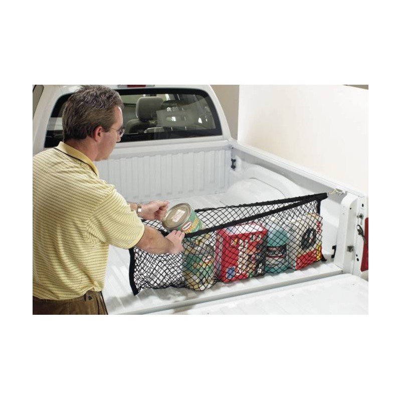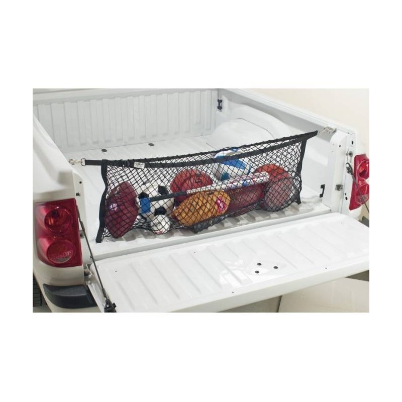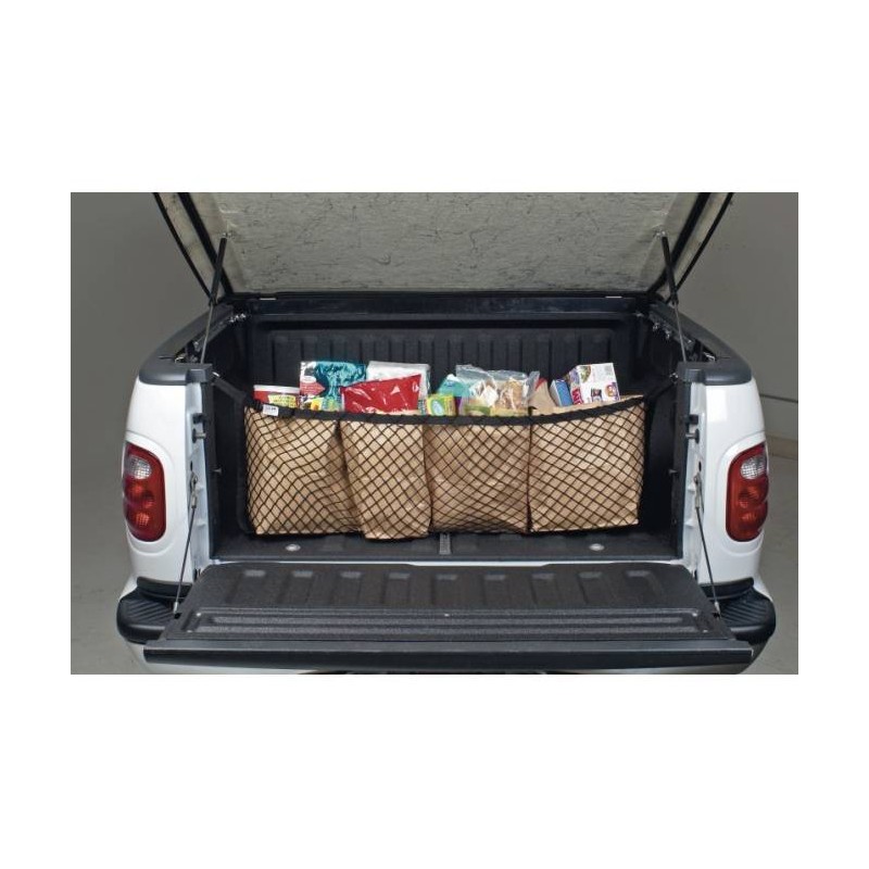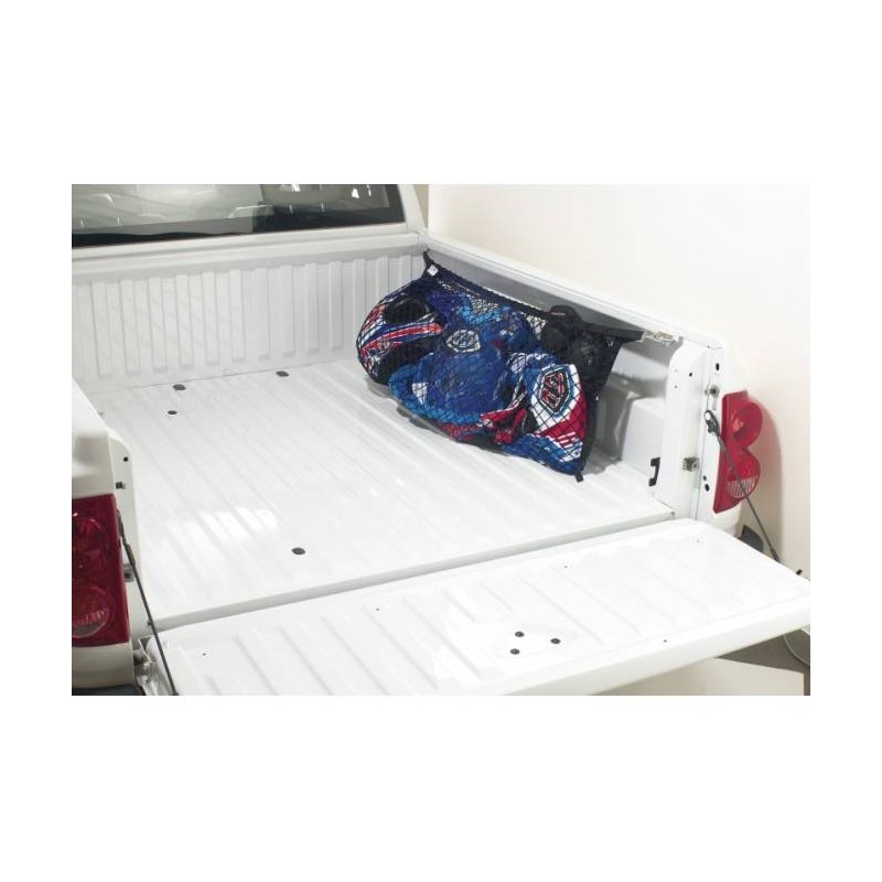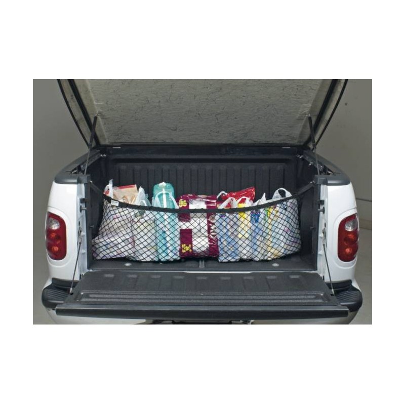 Dieses Netz wird wie eine Wäscheleine zwischen den zwei Enden der Ladefläche gespannt und bietet so im Innern Platz für Sport-Ausrüstung, Einkäufe, Werkzeug etc.