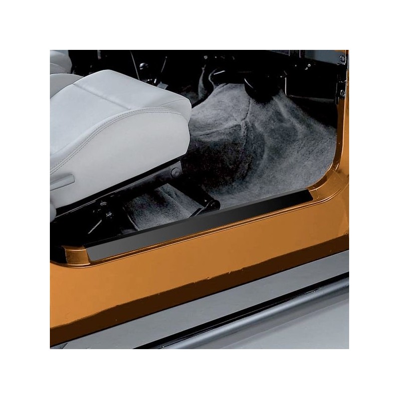 Mit 3M Klebeband befestigt, schützen die schwarzen Einstiegsblenden von Ruggedridge Ihr Fahrzeug von Kratzern und Dreck und werten die Optik zudem noch zusätzlich auf.