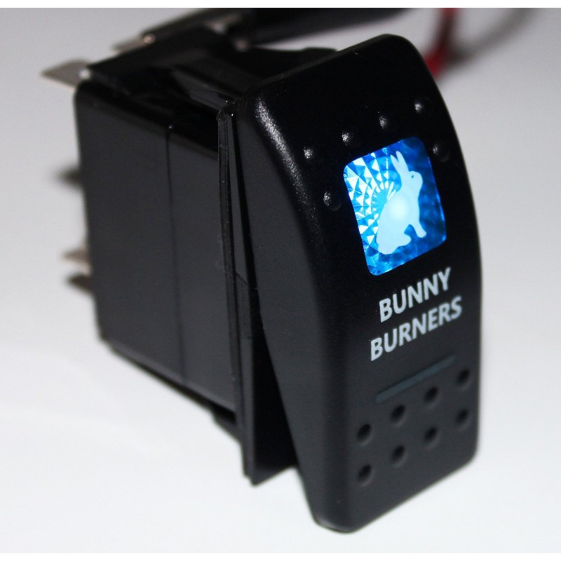 Kippschalter "Bunny Burners" mit blauer Beleuchtung