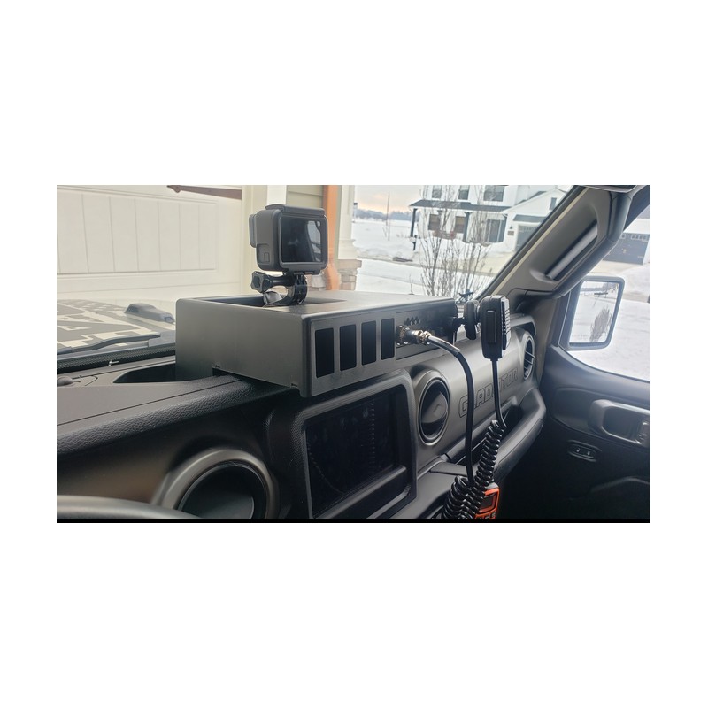 Dieses Produkt schafft Ordnung und Platz in Ihrem Wrangler oder Gladiator! Es bietet nämlich Platz für ein herkömliches CB-Funkgerät und dessen Lautsprecher, sowie für 4 Kippschalter Ihrer Wahl. Zudem bietet die integrierte Vertiefung in der Box Platz für so allerlei Krimskrams oder Kameras, Smartphones etc!
