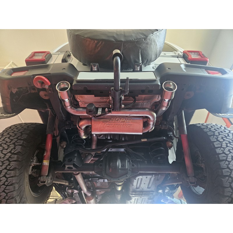 Die edelstahl Auspuffanlage von Borla verfügt über 2 Endrohre und verleiht Ihrem Wrangler einen satten, sportlichen Sound.