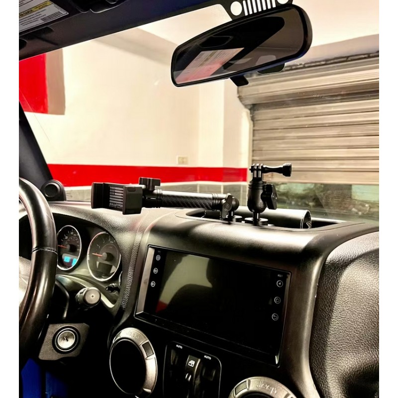 Passgenaue Halterung für Ihr JK Armaturenbrett mit einer XL Phone- sowie einer GoPro Halterung.
