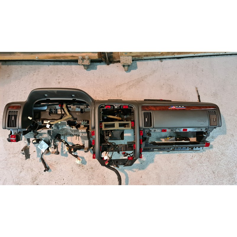 Komplettes Armaturenbrett mit Wurzelholz Zierleisten für Jeep Grand Cherokee WJ Jg. 99-04.